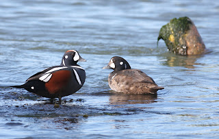 Harlequin Duck -- Harlequin Ducks are one of the specialty birds at Ocean City Inlet. Harlequins are almost annual but they can be surprisingly difficult to observe.